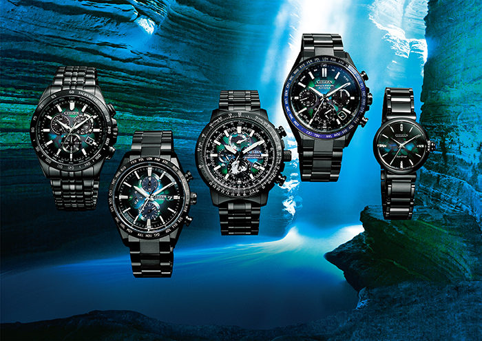 All models are equipped with CITIZEN’s proprietary light-powered Eco-Drive*2 technology. The dials are made from 100% recycled polycarbonate printed with structural colour ink developed by FUJIFILM Corporation. This innovative technology produces a captivating glitter and sheen on the dial, creating a sense of depth inspired by countless layers of rocks and minerals formed over millennia. The pigment-free ink utilizes light reflecting off the surface of the microstructures in the ink to create a range of hues and tones. These unique dials were made possible thanks to Eco-Drive technology that utilizes light as a form of clean energy to measure the passage of time. Each of the four men’s models has unique finishing on the bezel and dial inspired by different geological layers and minerals in the Earth’s crust. In contrast, the lady’s model features diamonds that give an elegant sparkle to the dial.