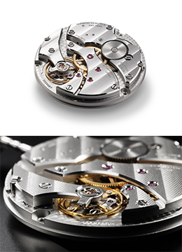 Equipped with a Stop Second function. - ● The gentle curves of the movement and the distinctive waves of the Côtes de Genève finish can be viewed through the transparent case back.