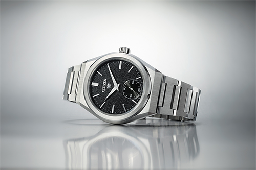 The watch has a bold, clean look, reflecting CITIZEN’s forward-looking approach. The eye-catching lugless case creates a distinctive silhouette and the finishing makes the most of the solid stainless steel material, with a striking contrast between the hairline and mirror finishes. When worn, the case and bracelet capture the light beautifully, producing an elegant lustre and giving the watch an unmistakable presence on the wrist.