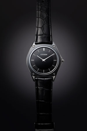 In addition to the three Super Titanium™ models, CITIZEN is introducing a limited-edition model (AR5044-03E) that will be available in 1,000 pieces worldwide, which will launch in 2018. The watch’s dark color scheme utilizes a dark grey bezel made of Altic, a hard material measuring more than 1,900 HV, delivering both strength and thinness. Combined with a black leather band, the dark tones provide a sharp contrast with the silver-colored cermet*6 case, the binderless-cemented carbide back plate, and trifold push-button clasp.
