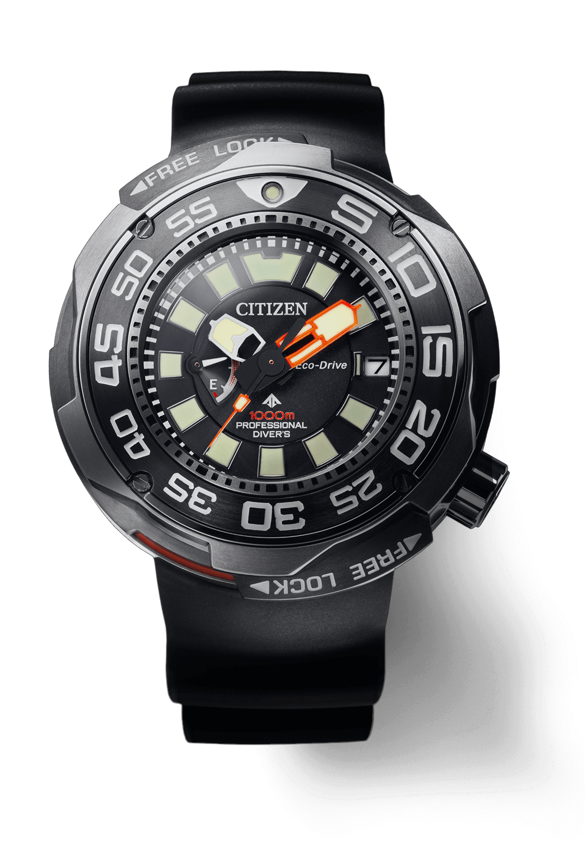 In 2021, PROMASTER launched three new Eco-Drive Diver 200m models. Their design is inspired by the 1982 Professional Diver, a Citizen Watch that boasted the highest depth rating in the world at the time of its release, with water resistance to 1,300 metres. The 1982 Professional Diver is the starting point of ‘Go Deeper,’ the philosophy that every PROMASTER dive watch made since then embodies for adventurers worldwide.