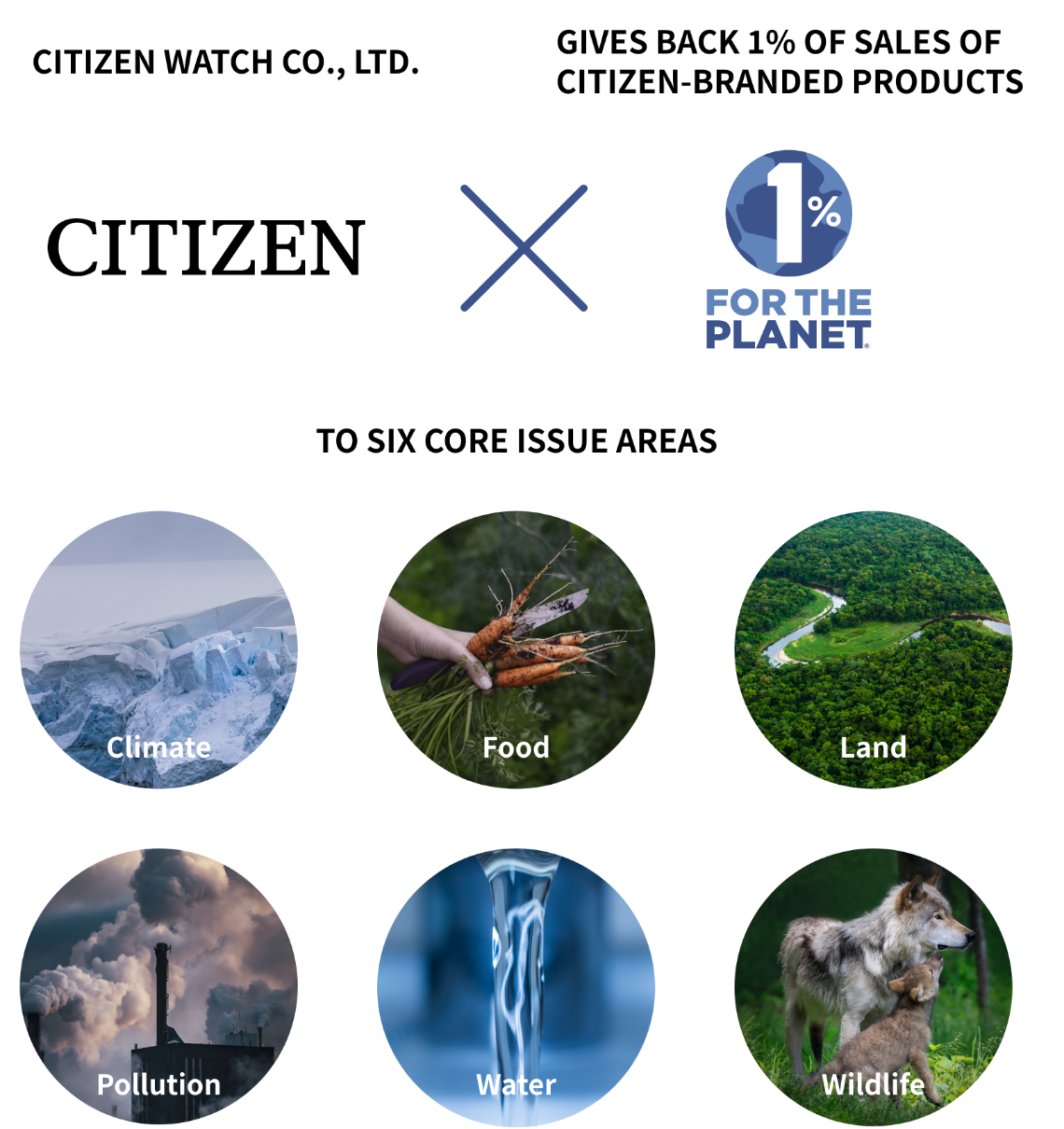 In April 2023, CITIZEN joined 1% for the Planet and started to donate 1% of the turnover from CITIZEN branded products* to environmental causes. It is part of our sustainable management policy, which has identified responding to climate change and helping to build a recycling-oriented society as key global challenges.