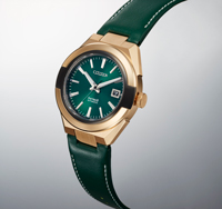 This latest limited-edition model has a striking two-piece bezel that accents the solid, sturdy look of the case. The hands and indexes create a dial that is both simple and eye-catching. The fashionable green color of the dial and strap contrasts with the understated warm gold and grey colors of the case, creating a fresh, new look. Watch functions have a strong emphasis on practicality, utilizing the Cal. 0950 mechanical movement newly developed in 2021. The movement features enhanced magnetic resistance, essential for our modern digital society, providing protection against magnetic fields generated by smartphones, tablets, and other devices that can affect the accuracy of the watch. The movement is just 4.1 mm thick, resulting in a thinner case and an extremely comfortable fit.