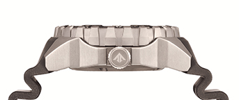 The bold trapezoid indentations around the edge of the case are both stylish and functional, providing a rugged look and a sure grip when using the bezel. The case has a two-piece structure and uses Super Titanium™ with CITIZEN’s proprietary surface-hardening technology, Duratect*3, making the watch incredibly light for its size. The rugged and tough good looks of this model are enhanced by an intricate almost stud-like pyramid pattern on the bezel and the dial with shades that shift depending on the viewing angle.