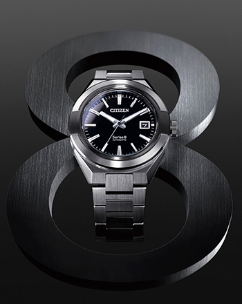 Series 8 watches feature a contemporary case design with clean, straight lines and an uncluttered layout. The bold combination of simple styling and a matte hairline finish with a multitude of fine lines provides a modern, sporty look. Watch functions have a strong emphasis on practicality, utilizing the Cal. 0950 and Cal. 9051 mechanical movements newly developed in 2021. In addition to these new movements, the watches also have enhanced magnetic resistance essential for our modern digital society, providing protection against magnetic fields generated by smartphones, tablets, and other devices that can affect the accuracy of the watch. The movement is just 4.1 mm thick, resulting in a thinner case and an extremely comfortable fit. The figure 8 in the Series 8 name represents infinity (∞), expressing the infinite possibilities of CITIZEN’s craftsmanship.
