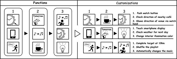 - Through the users’ smartphone, color of room illumination can be changed according to the daily weather condition.