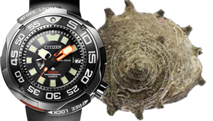 The Eco-Drive Professional Diver 1000m takes its design inspiration from the shape and structure of a turban shell. The durability and power of this shell case design was tested to the limits in successfully producing a professional grade light powered dive watch with a water tight fit to 1000 metres.
