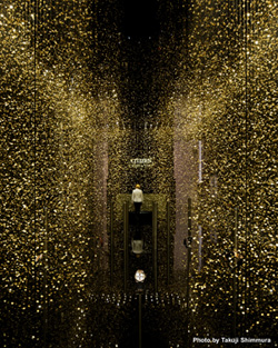 DGT architect Tsuyoshi Tane, based in Paris, and the CITIZEN design team worked on the installation. Representing the elements of light and time, it was formed according to Mr. Tane's idea: "Light is time. Without light the concept of time never would have arisen." Light strikes the original main plates of CITIZEN, a manufacture d'horlogerie, and ever-shifting light and sound fill the majestic space. With displays inside it ranging from the pocket watch where CITIZEN got its start to the latest satellite-synchronized watch, along with the sophisticated components that form them, CITIZEN prompted attendees to ponder anew the questions of "What is CITIZEN?" and "What is a watch?"