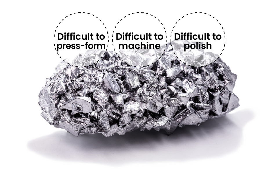 A craftsperson hand-polishes the precisely machined titanium to a smooth mirror finish. Because titanium is soft and viscous, conventional polishing can produce an uneven “orange-peel” effect. By pairing the skill of our expert craftspeople with a proprietary polishing technique that combines barrel polishing, Sallaz polishing and buff polishing, we can achieve a beautiful shine of which other companies are simply not capable.