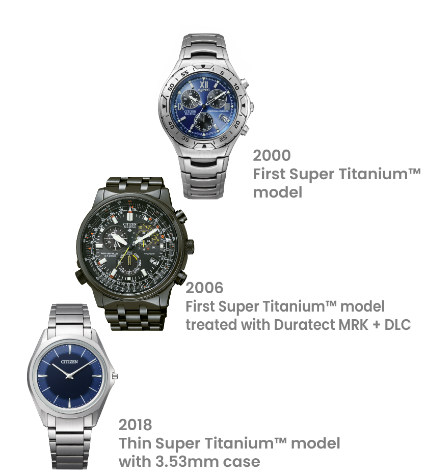 Super Titanium™ is a proprietary material unique to CITIZEN. We make it by treating titanium with Duratect, our proprietary surface-hardening technology.