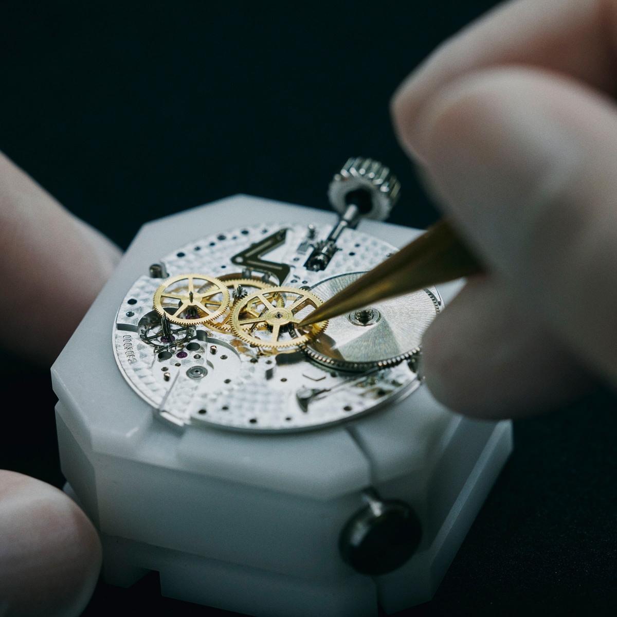 The hand that assembles the watch…