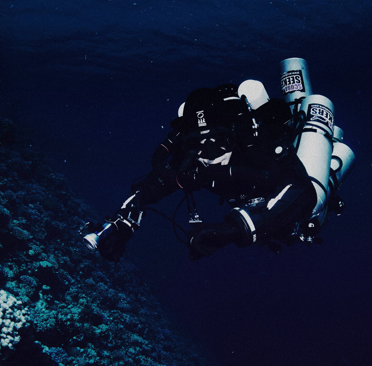 Then you have a magic encounter with some form of marine life: an isolated group of rare corals sporting their own biotope of fish life, a mola mola or a manta ray swimming up to you out of sheer interest. My passion for deep exploration and technical diving has taken me all over the world: to Egypt, Thailand, the Maldives and recently Scandinavia.